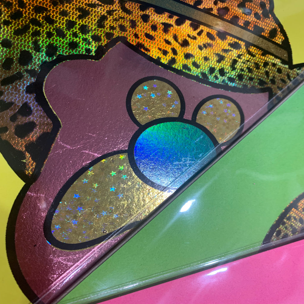 A shiny, sparkly fun foil print sure to add joy to any room. This is a multi layered art work using matte, glitter and leopard pattern foils. Each piece is lovingly hand made.